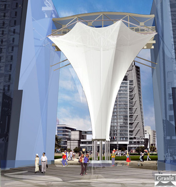 膜結(jié)構(gòu)造型多樣,帽口、飛燕造型比較普遍,投影與展開面積相差較大,膜結(jié)構(gòu)只能按展開面積來(lái)計(jì)算。同時(shí),膜結(jié)構(gòu)工程報(bào)價(jià)時(shí)每平方米的單價(jià)也只能是展開面積的單價(jià)。而作為一種柔性材料,曲面造型,膜的展開面積對(duì)客戶來(lái)說(shuō)很難確定。