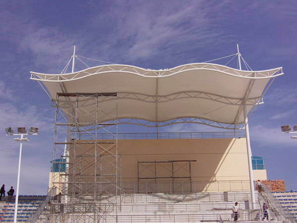 它還具有一定的透光性,所以我們?cè)谙硎芰怂陉栃Ч耐瑫r(shí),也并不會(huì)感覺特別的黑暗。對(duì)于整體的看臺(tái),可以達(dá)到非常完美的效果。所以現(xiàn)在越來越多的體育場(chǎng)地,在進(jìn)行看臺(tái)修建時(shí),會(huì)采用膜結(jié)構(gòu)看臺(tái)的構(gòu)建方法。而且它的投資成本也比較的低,是非常合算的做法。
